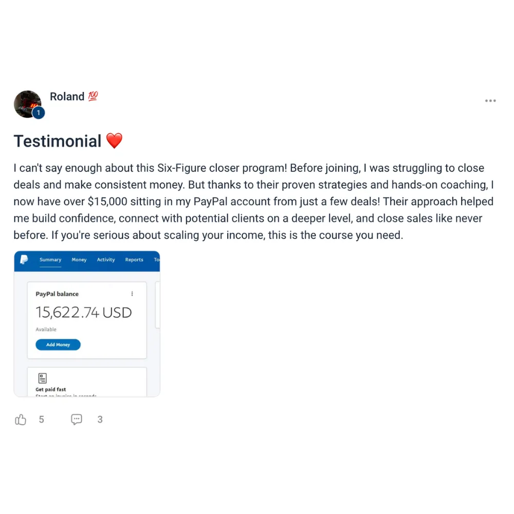“I’ve taken a bunch of sales trainings. Nothing compares to this. It’s built for actual closers who want to win on calls.”