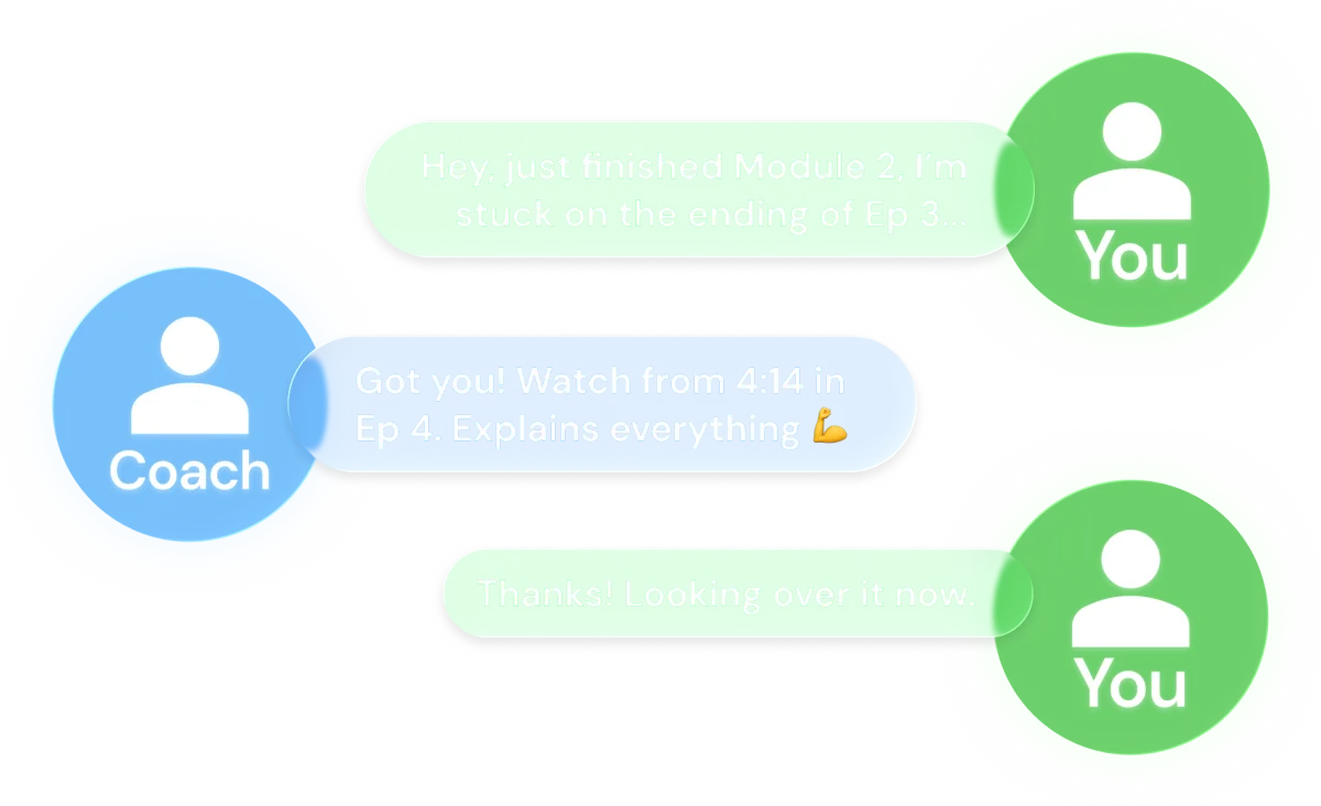A dedicated one-on-one coach is available to work with you, crafting a customized action plan tailored to your unique goals. Your Success Support Coach (SSC) will conduct regular check-ups to ensure you stay on track.